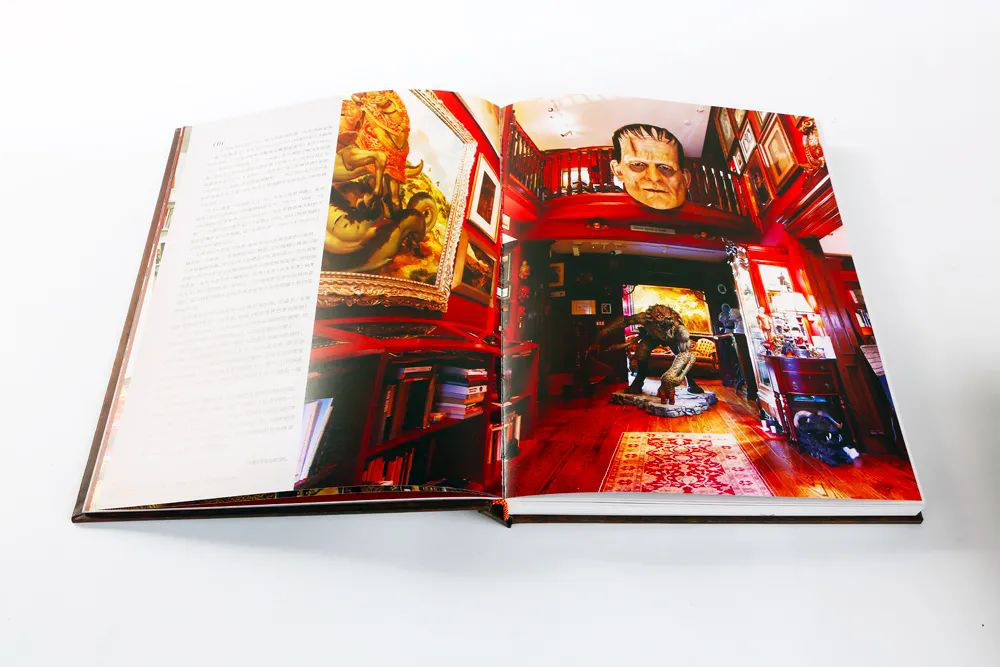 估计不少朋友都认出了,这个满是怪物模型、奇异手办、幻想画作、漫画书、克苏鲁、弗兰肯斯坦元素的大house(最右人像是H.P. Lovecraft,陀螺的偶像之一),人称“荒凉山庄”(Bleak House),这只是它的门厅。