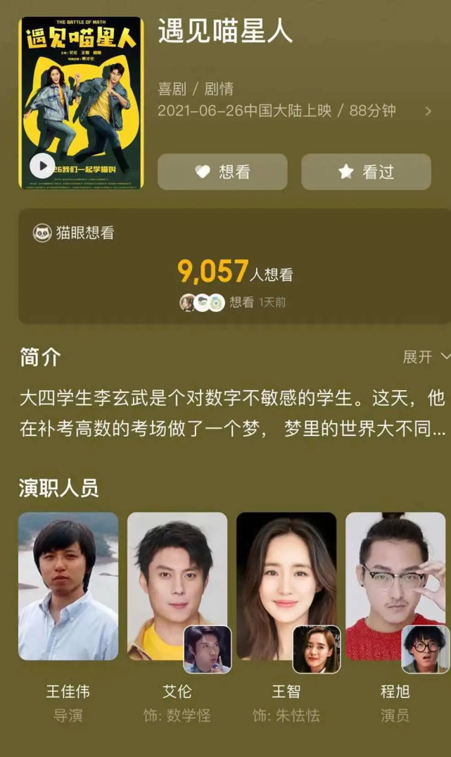《遇见喵星人》的故事很简单,对数字不敏感的大学生李玄武考试失利后,在参加高数补习班后,从而引发的一连串故事。按理说,有了“开心麻花”这个招牌,再加上故事题材,影片时长仅仅是88分钟,该片不至于“凉凉”的太惨。事实上,“开心麻花”招牌没有显灵,众多原因导致票房一言难尽。